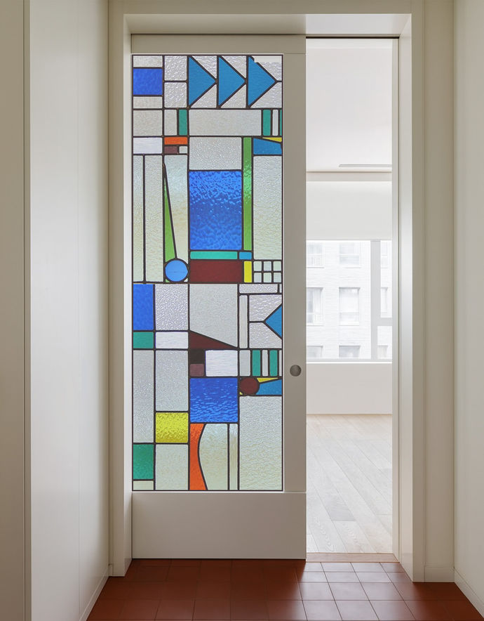 Spolupráce s Atelierem HRUBÝ na návrzích a realizacích vitráží pro okna, příčky a svítidla.